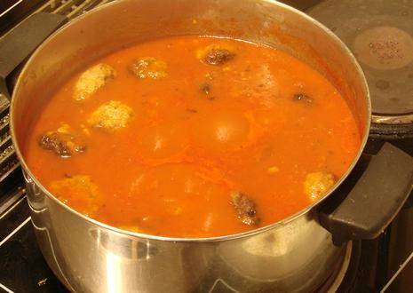 Note: Total cooking time for simmering the sauce should be no more than one-and-a-quarter hours. Cooking time for the meatballs should be no more than 20-30 minutes. You can either simmer the sauce for a while and add the meatballs for the last 30 minutes or you can start the sauce with the meatballs already added – then remove the meatballs after a half hour and continue simmering the sauce. There’s no real difference in taste either way. Simmering for longer will thicken the sauce if it seems to be too watery.