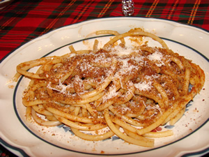 In a fry pan take the 1 anchovy fillet, add 1 tbsp. of olive oil, mash the fillet with a fork, and add one cup of bread crumbs ( I prefer seasoned). Stir constantly, cooking over low heat, until it is toasted to your liking. Serve this mixture over the pasta instead of cheese.